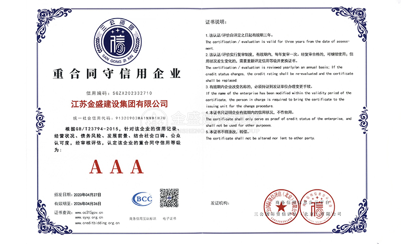 先后被我省市命名為"重合同,守信用"企業(yè),"AAA"級(jí)施工單位和 施工單位